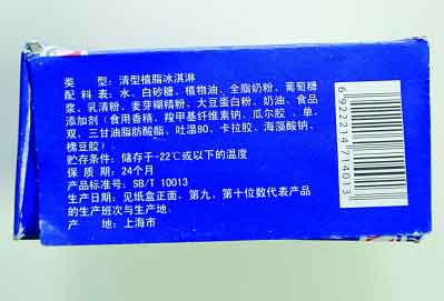 記者還發(fā)現(xiàn),在主料的標注上各廠家也并不規(guī)范,以大部分產品都會添加的植物油為例,都是籠統(tǒng)地寫著植物油或食用植物油。但專家介紹,植物油有很多種,如大豆油、花生油、麻油、菜子油,但普通液態(tài)植物油并不容易達到冰淇淋的形態(tài)和口感,所以有的廠家會對植物油進行部分氫化變成半固態(tài)的植物油,但氫化植物油中含有對健康不利的反式脂肪酸,所以建議廠家進行更細致的標注。據(jù)京華時報