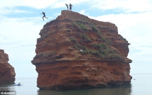 據(jù)外媒12日報道,在英國德文郡,一群游客目瞪口呆地看著一個青年從一塊巨大的高聳巖石中跳下,而他的兩個朋友看起來也打算這么干。這個青年從60英尺(約合18.2米)高的懸崖跳下,但下面并沒有采取任何保護措施。