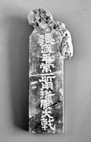 [提要] 2010年8月25日以后,閆沛東在接受各媒體記者采訪時(shí),宣稱“曹操墓”最重要的證據(jù)“魏武王常所用格虎大戟”石牌系偽造。