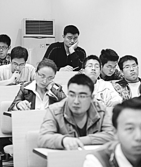 早在入學前姚明就表示不想只是單單混個文憑,這也就注定了其求學之路絕對不會一帆風順。雖然主修金融學,但姚明所要涉及的還包括新聞、歷史等科目。對于網絡上傳言的掛科說,害羞的姚明不愿意透露自己的期末考試成績,但對于自己在學習上的弱勢科目,巨人則毫不避諱,他一針見血地表示:“雖然所學的科目比較多,但大多數的學科我還是能夠勉強應付,唯獨高數讓我十分難過,高數是我最頭痛的東西,因為這個科目的邏輯性比較強,而且知識比較系統,前面的功課缺一點,后面就很難連接得上,所以高數現在對于我來說,應該是最困難的,但是通過我和老師的努力,我的成績每一天都會有進步。”
