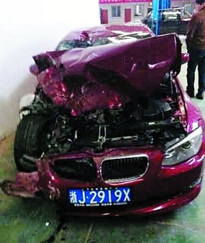 前天凌晨1點多鐘,臺州市椒江區(qū)星明路上,一輛紅色寶馬車追尾一輛出租車。出租車隨后撞上一輛?吭诼愤叺拇笮拓涇,車頭嚴重受損,出租車司機被卡昏迷。
