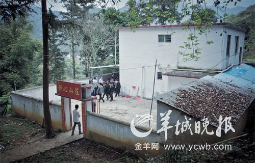 “靜心山莊”藏在羅浮山深處。從門外看,山莊和普通民宅并無二致,低矮的圍墻,簡陋的閘門, “靜心山莊”四個大字只在一張紅紙寫就,兩邊寫著“靜心排憂忘歲月”、“世塵不占待圣明”的對聯(lián)!翱吹礁浇愤叺闹甘九,還以為是什么‘國際大型會館’,找了幾次都沒找到,沒想到就這一座破房子! ”常來羅浮山旅游的黃先生告訴羊城晚報(bào)記者,他多次在附近游覽,都沒發(fā)現(xiàn)這座不起眼的小房子。
