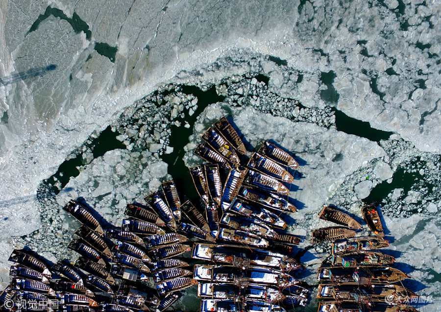 遼寧大連海冰加劇 大批漁船被凍海面 (/)