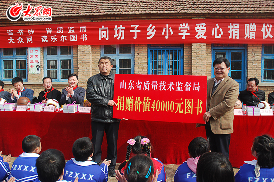 山東省質量技術監督局為學校捐贈了價值40000元的圖書和文體器材。大眾網記者 王長坤 攝