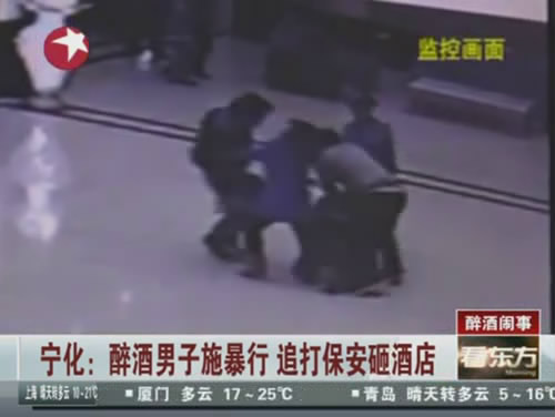 醉酒男子追打保安砸酒店 2012-04-05 08:40:38
