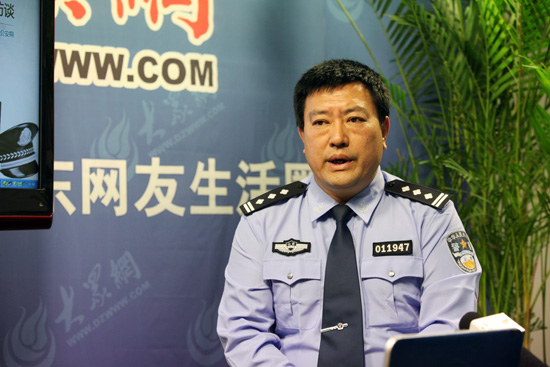 濟南市公安局長清區分局萬德派出所所長陳傳鐸做客第二十五期“所長在線”與網友互動交流。(曹亮 攝)