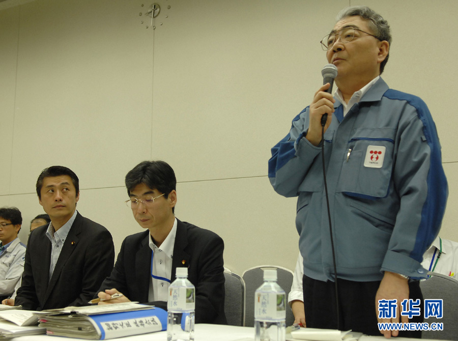 7月19日,在日本東京電力公司總部,東電社長西澤俊夫(右)回答記者的提問。當(dāng)日,日本政府和東京電力公司應(yīng)對福島核電站事故聯(lián)合記者會在東京電力公司舉行,記者會發(fā)布了新工程表。核事故善后及預(yù)防擔(dān)當(dāng)大臣細野豪志表示,目前完成了工程表第一階段的循環(huán)冷卻注水目標,第二階段最遲至明年1月使反應(yīng)堆實現(xiàn)低溫停止的目標不變。新工程表加入一項3年左右的“中期課題”——在第二階段目標完成后,著手開始將乏燃料池中的核燃料搬出。新華社發(fā)(關(guān)賢一郎攝)