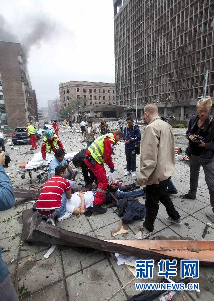 7月22日,救援人員在挪威奧斯陸市爆炸現場忙碌。奧斯陸市中心當日發生爆炸,造成數人受傷。 新華社/美聯