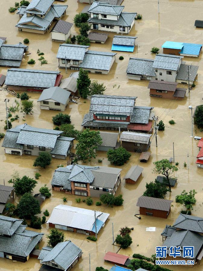 日本新潟縣和福島縣29日起普降暴雨,一些河流泛濫、決堤,導致一人死亡、5人失蹤。新華社/路透
