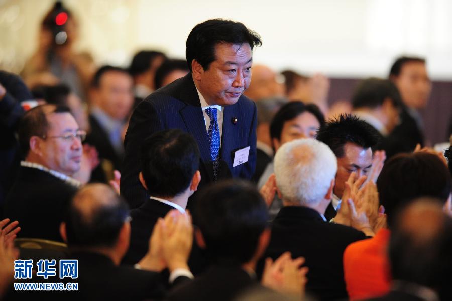 8月29日,在東京舉行的民主黨眾參兩院議員總會(黨首選舉大會)上,日本財務(wù)大臣野田佳彥當(dāng)選民主黨代表后致意。日本財務(wù)大臣野田佳彥當(dāng)日在執(zhí)政黨民主黨代表(黨首)選舉中擊敗對手,當(dāng)選該黨新代表,并有望成為日本新首相。 新華社記者季春鵬攝
