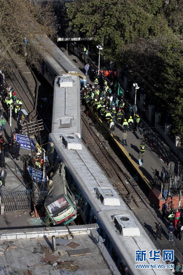 9月13日,在阿根廷首都布宜諾斯艾利斯,救援人員在城鐵列車和公交車相撞事故現場忙碌。布宜諾斯艾利斯13日發生一起城鐵列車和公交車相撞事故,目前已造成上百人受傷。新華社發(馬丁·薩巴拉攝)