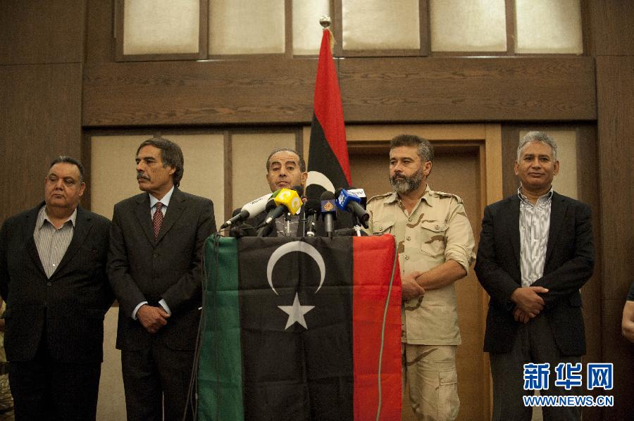 10月20日,利比亞“全國過渡委員會”執行委員會主席賈布里勒(中)在的黎波里舉行新聞發布會,證實卡扎菲當天在蘇爾特身亡。新華社記者李木子攝