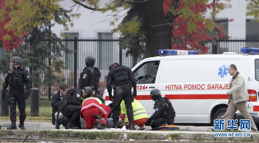 10月28日,在位于薩拉熱窩的美國駐波黑使館附近,一名槍手被警方制服。這名槍手28日下午在位于薩拉熱窩的美國駐波黑使館前開槍射擊,造成使館外數人受傷。 新華社/路透