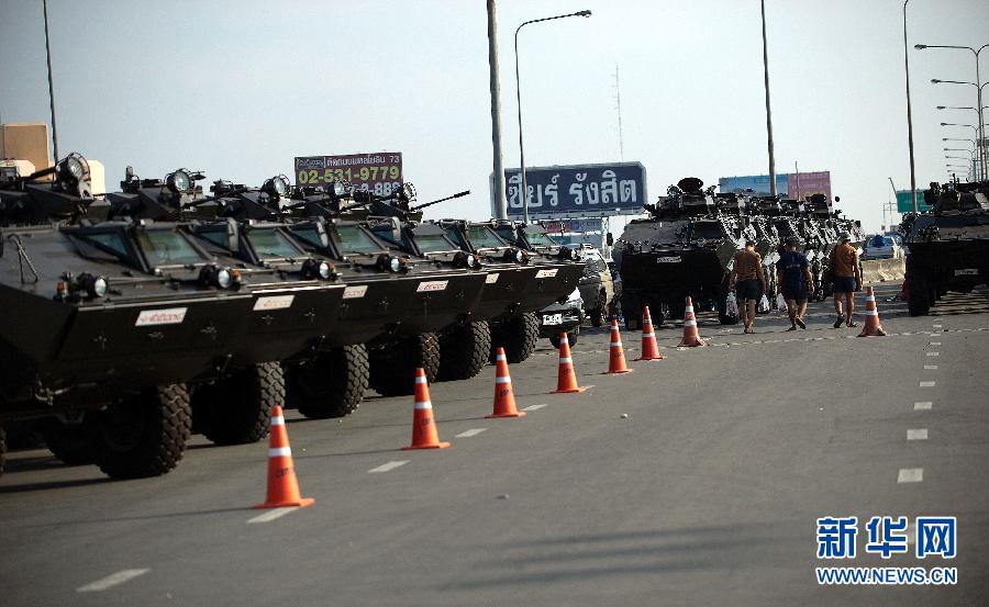 11月15日,在泰國曼谷郊區,泰國士兵們把裝甲車停靠在大橋上躲避洪水侵襲。泰國總理英拉·西那瓦15日承認,首都曼谷部分地區的洪水年底前恐怕不會消退。同一天,幾名執政黨議員向議會遞交一份動議,倡議議會成立一個委員會,討論首都遷址或設立第二首都的可能。新華社/法新