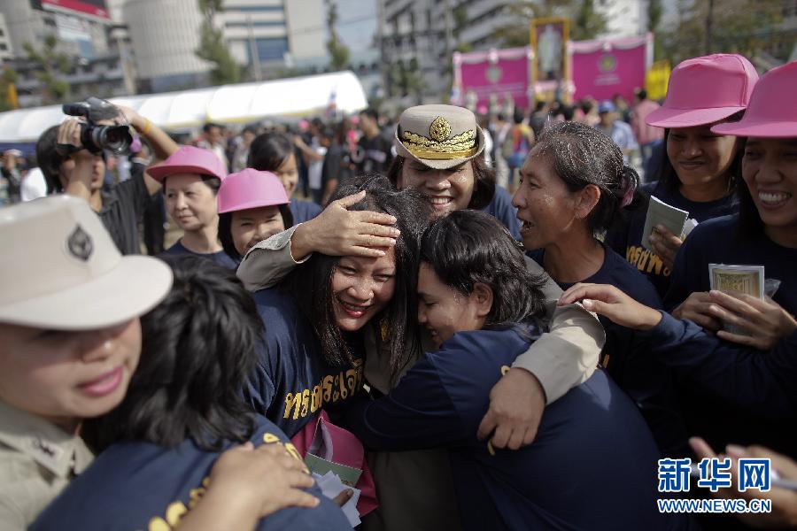 12月8日,在泰國首都曼谷的邦廣中央監獄,被赦女囚犯與獄警告別。