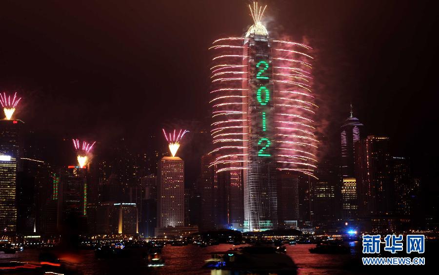 當日零時許,“新年倒數詠香江”活動在香港舉行,活動中用燃放焰火慶祝2012新年的到來。 新華社記者 陳曉偉 攝
