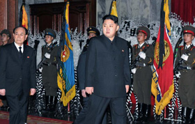 朝中社1月3日提供的照片顯示,平壤市3日在金日成廣場舉行群眾集會,決心貫徹朝鮮勞動黨中央政治局決議、黨中央委員會和黨中央軍事委員會發布的共同口號以及新年聯合社論精神。新華社/朝中社