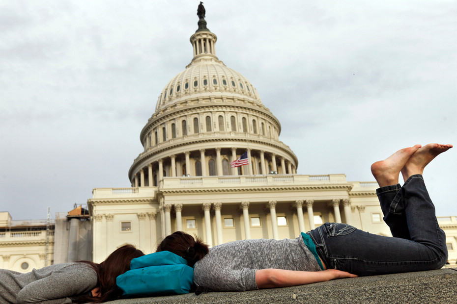 當?shù)貢r間2012年3月12日,華盛頓。16歲的Glorie Dowell和Jackie Stradinger在美國國會大廈前享受早春的時光。
