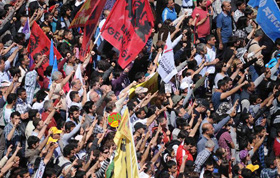 5月4日,在埃及首都開(kāi)羅,示威者與軍隊(duì)士兵發(fā)生沖突。埃及首都開(kāi)羅數(shù)萬(wàn)民眾4日再次分別聚集在開(kāi)羅兩大廣場(chǎng),對(duì)日前在國(guó)防部附近發(fā)生沖突,導(dǎo)致大量人員傷亡的事件表示憤怒,要求軍方如期交權(quán)。駐守在國(guó)防部的軍警與示威民眾間當(dāng)天再次爆發(fā)沖突,導(dǎo)致59人受傷。新華社/美聯(lián)