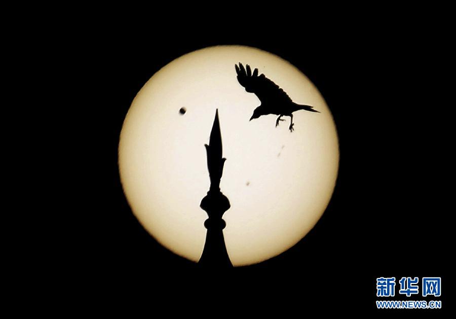6月5日至6日,天宇上演罕見天象“金星凌日”。所謂“金星凌日”是指金星在圍繞太陽運行時,恰好處于太陽和地球之間,三者排成一條直線時,就會發生凌日現象。從地球上看,金星就猶如太陽面龐上的一顆黑痣,緩緩滑過。上一次的“金星凌日”發生在2004年,而下回再發生這一天象,就要等到2117年。新華社/美聯