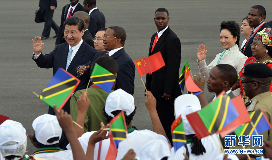 3月24日,國家主席習近平乘專機抵達達累斯薩拉姆尼雷爾國際機場,開始對坦桑尼亞進行國事訪問。坦桑尼亞總統基奎特和夫人到機場迎接習近平和夫人彭麗媛。新華社記者 王曄 攝