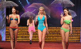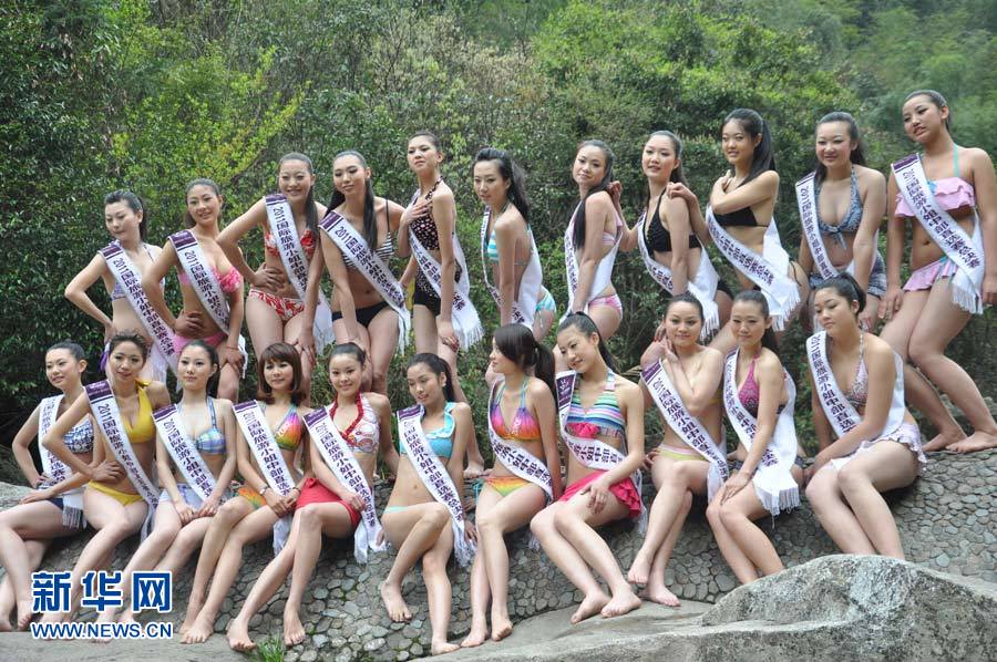4月6日,參加2011國(guó)際旅游小姐中部賽區(qū)直選賽的佳麗在江西婺源臥龍谷景區(qū)展示風(fēng)采。