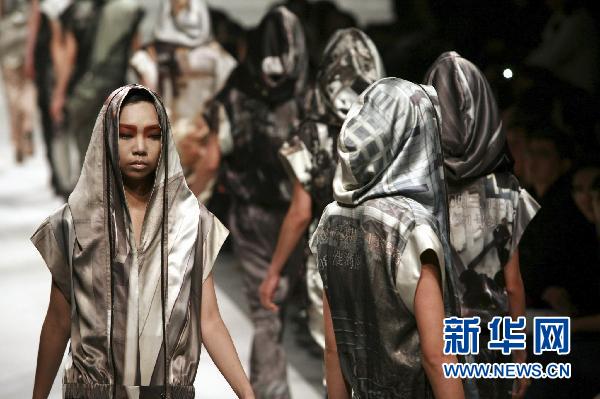 4月8日,模特在上海靜安800秀場舉行的Content(目錄)時(shí)裝發(fā)布會(huì)上走秀。當(dāng)日,2011上海國際服裝文化節(jié)上演了一場主題為Content(目錄)的時(shí)裝發(fā)布秀。在3月16日至4月16日期間舉行的2011上海國際服裝文化節(jié)暨上海時(shí)裝周2011秋/冬作品發(fā)布,以“創(chuàng)新·融合·時(shí)尚上!睘橹黝},掀起了一股時(shí)尚潮流的旋風(fēng)。新華社發(fā)(莊毅 攝)