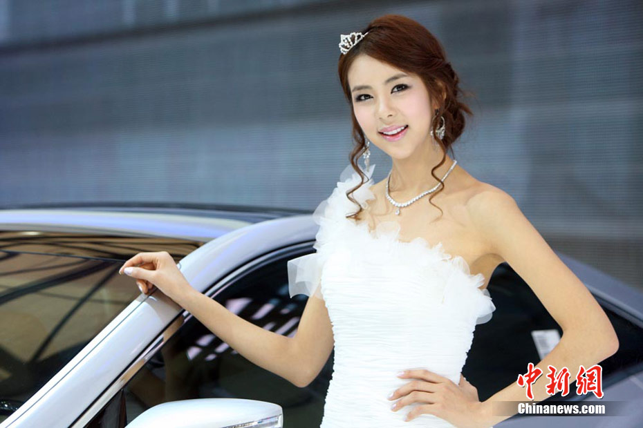 4月19日,在2011年上海車展上,風(fēng)情萬種的美女車模吸引了眾多參觀者的眼球。中新社發(fā) 湯彥俊 攝