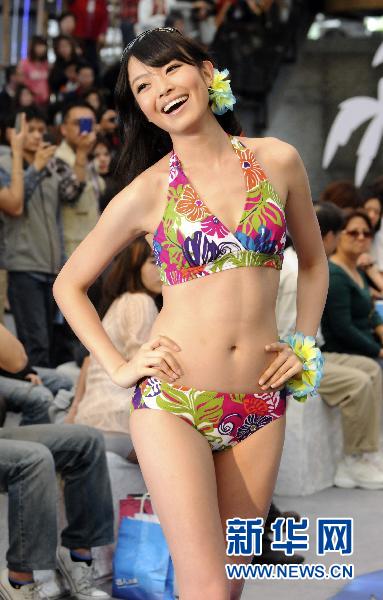 4月23日,模特在臺北花博會流行館展示泳裝。當日,一場以“花YOUNG繽紛”為主題的泳裝秀亮相臺北花博會流行館,12名臺灣新生代模特展示120套由知名設計師設計的新品泳裝。 新華社發(吳景騰 攝)