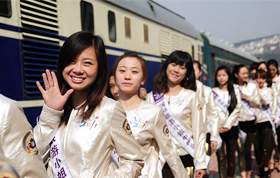 “這是我第二次參加上海車展,舞臺上的我們光鮮靚麗,但也要為之付出很多。”龐涵月是北京服裝學院服裝表演與工程專業的一名大三學生,參加車展是她社會實踐課的一部分。“在展臺上一刻也不能放松,要盡量少地眨眼,始終保持最佳笑容,還要反復檢查自己的儀態是否得體,任何一個有缺憾的瞬間如果在網絡上被公開,不僅關系個人得失,也關系到品牌形象。”據涵月介紹,對于車模來說,眼睛被閃光燈刺激得流淚,小腿站得抽筋,腳跟被高跟鞋磨出水泡都是常有的事情。每天早上八點,涵月就和奇瑞汽車的其他25位車模乘大巴抵達車展所在地,五場集體演出,五場隨車展示是必修課,剩下的大部分時間大家都擠在40平米左右的休息室內整理妝容。“因為進出不便,中午就在休息室吃盒飯或者泡面。”盡管條件艱苦,但她還是很開心,“每次來車展都可以認識很多朋友,年輕人在一起總是少不了歡聲笑語。”每天的工作要持續到下午六點,結束之后領隊還要對所有車模的表現進行點評。“車模的工作非常講究細節,所以有時做夢的時候還會琢磨自己該露幾顆牙齒。”涵月笑著說。作為奇瑞展臺的一號車模,涵月還要定期參加車展上的媒體專訪活動,她告訴記者,自己是國產汽車品牌堅定的擁護者和支持者。“國產汽車的進步很快,技術和工藝也在不斷的提高,如果多一些人性化設計,相信一定會有更多的人選購我們自己造的車。”