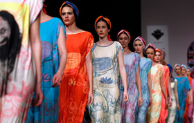 8月13日,模特在展示新款婚紗禮服。當日,“2012婚禮新概念發布會”在南京國際博覽中心舉行,發布項目包括國際婚紗新品、婚飾品新概念、個性主題婚禮趨勢、蜜月新去處等。新華社記者 孫參 攝