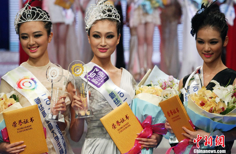 8月16日晚,由新絲路時尚文化機構主辦的首屆“2011新絲路中國大學生模特大賽”在深圳舉行,大賽以“夢想”為主題,展現當代大學生風采,該賽事亦是首次面向中國在校大學生舉辦的專業時尚賽事,選自北京外國語大學、上海工程技術大學、北京工商大學、天津理工大學、太原理工大學等多所高校的20位佳麗參加總決賽,經過激烈角逐,5號選手馬菁獲得大賽冠軍、4號選手顧蔚獲得亞軍、6號選手張思云獲得季軍。中新社發 錢興強 攝