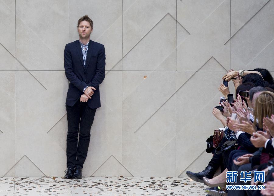 9月19日,在英國首都倫敦,英國品牌博柏利的設計師克里斯托弗·貝利在該品牌時裝秀結束后致謝。倫敦2012年春夏時裝周于9月16日至21日舉行。 新華社發(唐詩攝)
