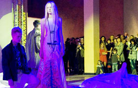 10月21日,模特在美國洛杉磯時裝周上展示安東尼·佛朗哥(Anthony Franco)的作品。 當日,洛杉磯時裝周在加州開幕。 新華社發(趙漢榮攝)