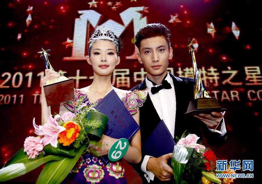 12月3日,分別獲得2011第17屆中國模特之星大賽男女冠軍的男模特蔡浩和女模特胡楠在頒獎儀式上。當日,2011第17屆中國模特之星大賽總決賽在廣西南寧落幕。男模特蔡浩和女模特胡楠分別獲得男女冠軍。 新華社記者 陳建力 攝