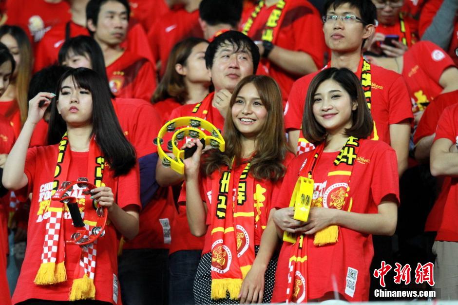 2014亞冠聯賽小組賽展開第3輪較量,廣州恒大主場對陣韓國球隊全北現代,最終廣州恒大以3比1戰勝對手。一眾美女球迷靚爆賽場,看臺歡呼吶喊為廣州助威。