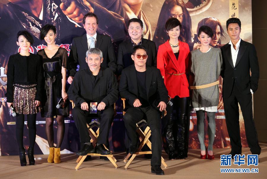 12月12日,電影《龍門飛甲》主創人員和嘉賓在新聞發布會上合影。當日,電影《龍門飛甲》在北京舉行新聞發布會,導演徐克攜主演李連杰、周迅、陳坤、李宇春、桂綸鎂、范曉萱等悉數亮相。影片將于12月15日在全國上映。新華社發(楊樂 攝)