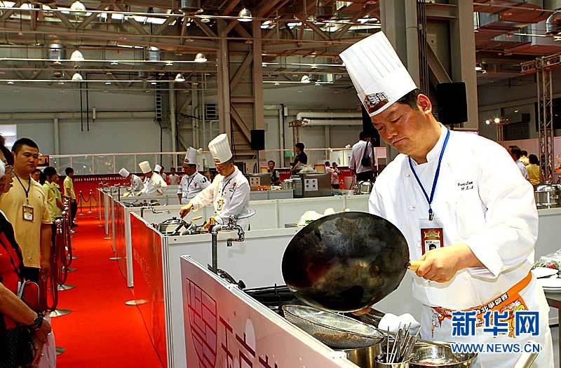 5月26日,參賽廚師們在世界廚王爭霸賽上忙碌。當日,為期5天的2011世界廚王爭霸賽暨美食博覽會在臺北開幕。 新華社記者龔兵攝