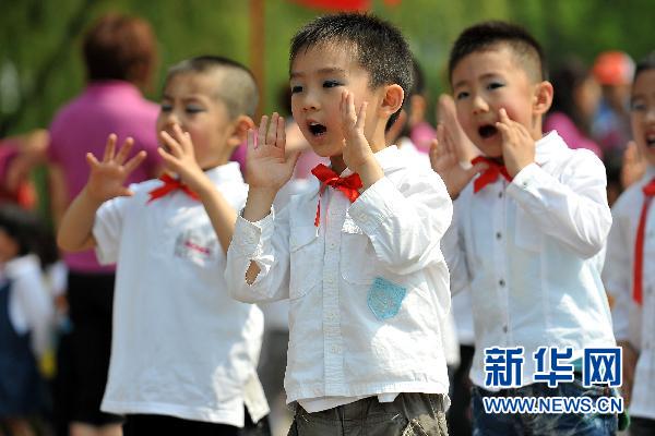 5月27日,太原市晨之陽光寶貝幼兒園的小朋友在朗誦詩歌。當日,太原市晨之陽光寶貝幼兒園舉辦主題為“快樂成長”的文藝匯演,小朋友們載歌載舞,展示才藝,迎接“六一”國際兒童節。