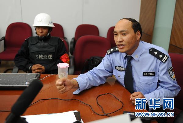 記者7日趕到麗江市對此事進行調查。據當地警方稱,短道速滑部分隊員6日深夜有酒后擾民行為,巡防隊員在勸說時與之發生沖突,雙方均有人員受傷,但基本都是皮外傷,傷情沒有網上所說的嚴重。醫院表示,錄像證明醫院對傷者進行了及時診治,但未能滿足隊員所提“必須住單間病房”的要求。7日晚短道速滑隊已返回昆明。這是麗江古城派出所教導員和學軍(右)介紹事發情況(6月7日攝)。 新華社記者秦晴攝