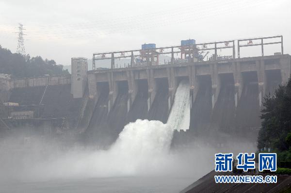6月21日上午,新安江水庫開閘泄洪。新安江水庫大壩位于新安江水力發電廠區內,記者在水庫大壩下方距離約120米的一座橋上,可以看到水像瀑布一樣傾瀉而下。 新華社記者 鞠煥宗攝