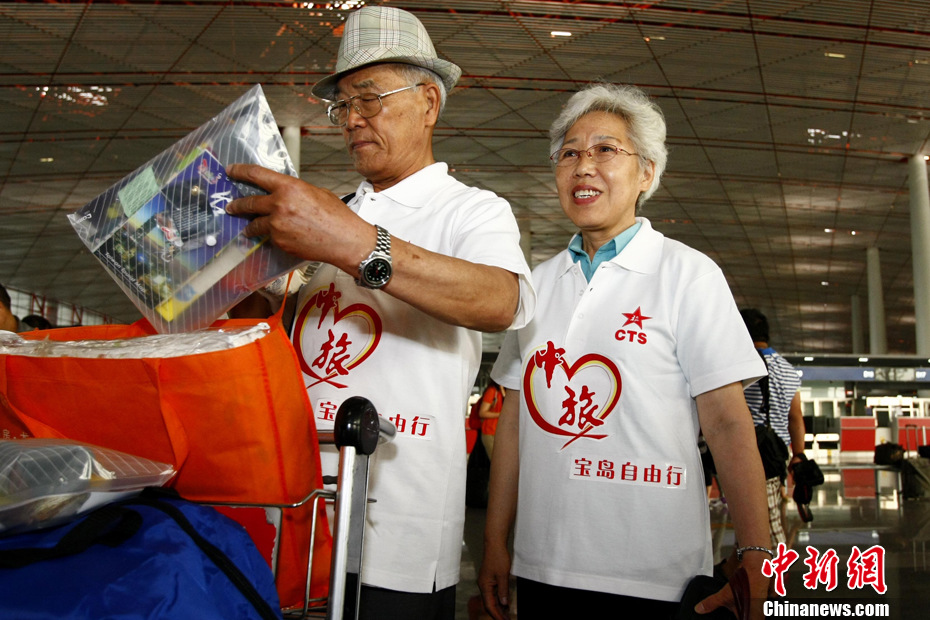 6月28日,兩岸民眾翹首企盼的大陸居民赴臺個人游正式啟動。290名首批幸運兒將于當日分別自北京、上海、廈門出發奔赴寶島。赴臺個人游啟動首日,第一批61名游客將于當日上午8:30乘坐國航ca185航班自北京起飛,預計當日中午之前抵達臺北桃園機場。國家旅游局、國臺辦、北京市旅游局、臺旅會等部門在首都機場為首日首批赴臺游客舉行了簡短的歡送儀式。中新社發 富田 攝