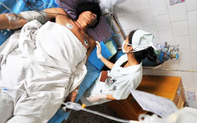7月3日,當(dāng)家人逗樂7個(gè)月大的兒子陳至軒時(shí),躺在病床上的吳菊萍也露出笑容。 7月12日上午,妞妞醒了。她從10樓墜落,竟然被一位英雄般的母親奮不顧身地伸手接住;她曾經(jīng)命懸一線,長(zhǎng)時(shí)間深度昏迷,現(xiàn)在竟然又能喊出“媽媽”。這是生命的力量,這是愛的奇跡。 妞妞沉睡了11天。這11天來,世界各個(gè)角落的網(wǎng)民,在微博上頂起了一座前所未有的愛的“高樓”。新華社記者黃宗治攝
