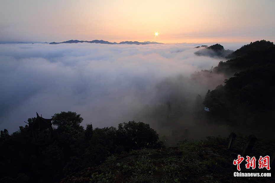 7月20日,安徽省國家地質公園齊云山在云海中時隱時現,絕美風光令人陶醉。