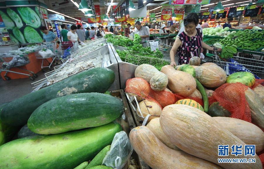 市民在江蘇省南通市一家超市內選購蔬菜(8月7日攝)。