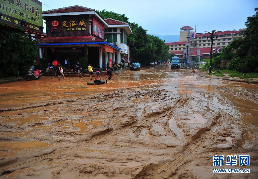 福建省莆田市區(qū)道路積水退后,一片泥濘(9月1日攝)。 8月29日起,熱帶風(fēng)暴“南瑪都”連續(xù)3天造成福建莆田市普降暴雨,主城區(qū)內(nèi)澇受淹,災(zāi)情嚴重。 新華社記者 魏培全攝