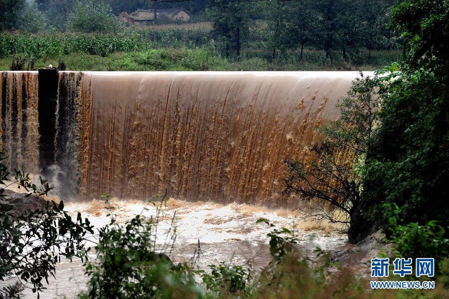 在河南省欒川縣合峪鎮境內,洪水從一座攔河大壩上傾瀉而下(9月6日攝)。從9月3日開始,河南省西部伏牛山區連續降下中到大雨,造成部分地區出現了較大的山洪。在欒川、嵩縣境內,洪水順河而下,兩岸的村莊、橋梁受到了不同程度的災害。據當地氣象部門預計,降雨天氣將會持續到9月10日。目前,當地政府和有關部門正嚴陣以待,全力準備防大汛、抗大災。王頌 攝 圖片來源:新華網
