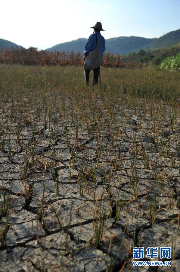 在廣西田林縣舊州鎮平滿村,一位村民從干裂的稻田里走過(9月7日攝)。廣西氣象部門有關統計顯示,今年7月1日至8月底,廣西平均降水量228毫米,比常年同期偏少近五成,為1951年以來同期最少,目前百色、河池、賀州、梧州等地均遭受不同程度旱災。新華社記者 周華 攝