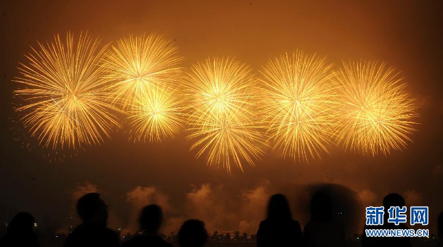 長沙市民在湘江邊觀賞音樂焰火晚會(9月10日攝)。 9月10日晚,湖南省會長沙在湘江橘子洲舉行以“嫦娥奔月”為主題的焰火音樂晚會,讓前來觀賞的市民、游客提前感受到中秋節日氣氛。新華社記者 龍弘濤 攝