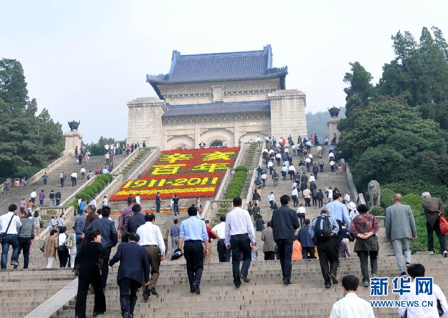 10月10日,游客登上中山陵。當日,在紀念辛亥革命100周年之際,數以萬計的南京市民和各地游人來到南京中山陵參觀、拜謁,表達對孫中山的緬懷和敬意。 新華社記者 孫參攝
